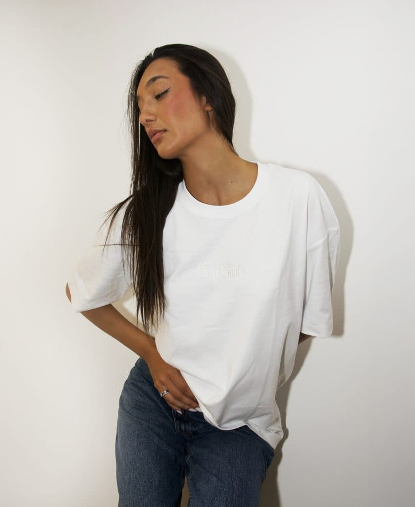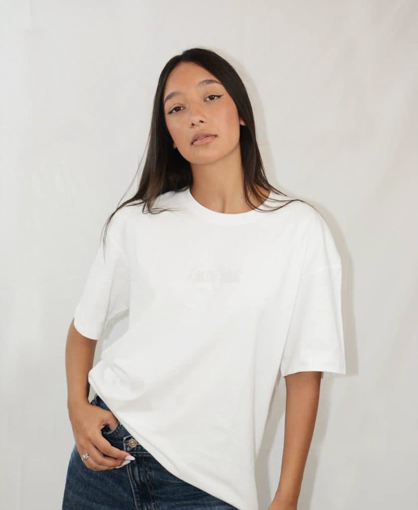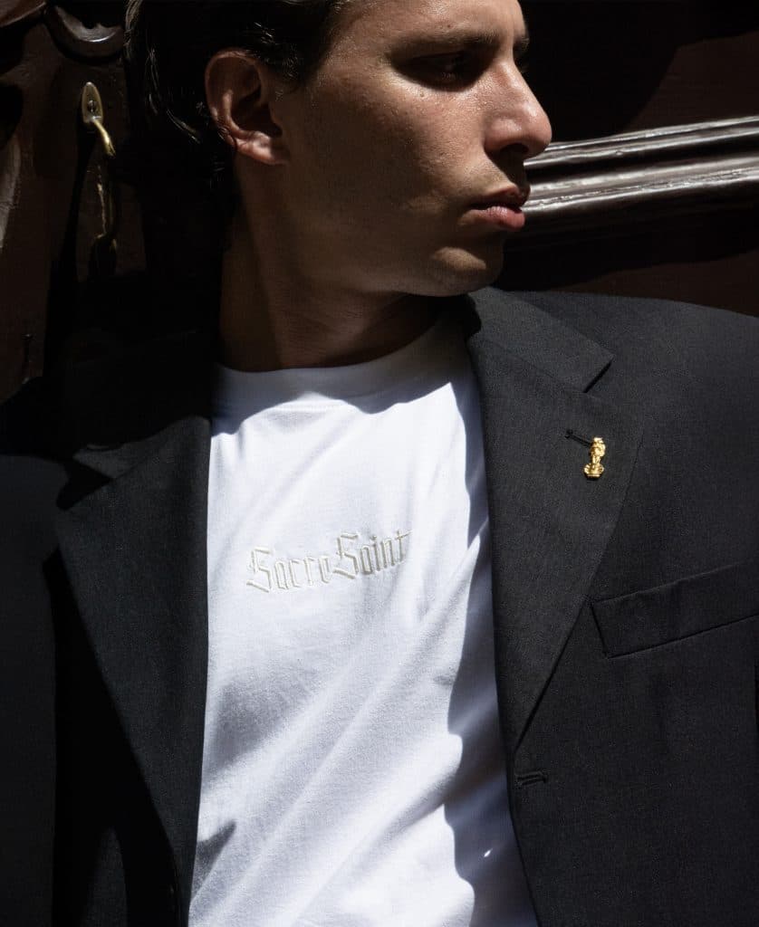 La maglietta Sacresaint è la soluzione perfetta sia per un outfit leggero e casual, che per essere indossata in modo inaspettato al posto di una camicia, sotto un blazer o un abito elegante, dimostrando la sua incredibile versatilità e adattandosi a ogni occasione.